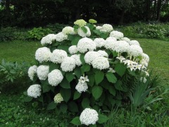 Легендарная классика среди древовидных гортензий — огромные шаровидные соцветия диаметром до 20–30 см чисто-белого цвета (сначала лайм-зелёные, затем ослепительно-белые, к осени зеленовато-бежевые). Куст раскидистый, но крепкий (100–150 см высотой и до 150–200 см шириной), побеги прочные. Цветёт обильно и долго — с июня-июля по сентябрь-октябрь. Листва крупная, тёмно-зелёная, декоративна весь сезон.