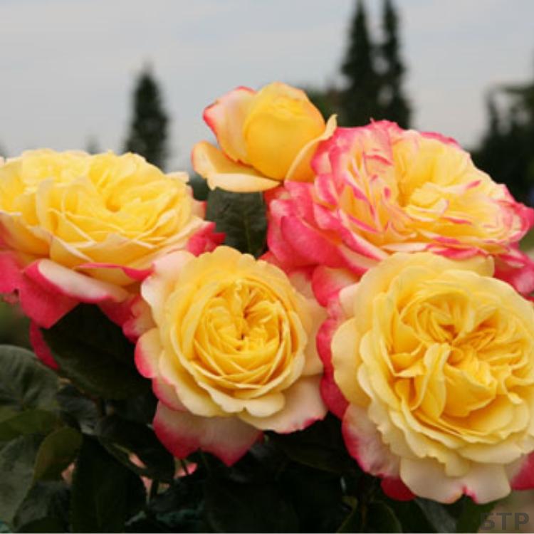 Сорт Кордес Юбилей относится к группе чайно-гибридных роз. Сногсшибательной красотой обладает цветок розы этого сорта. В течение своего существования он меняет свой цвет с желтого до ярко-розового. Сначала, когда бутон только начинает разворачиваться, лепестки желтые, и лишь самые крайние из них имеют ярко-розовую окраску. Чем больше дней цветку, тем больше розовый цвет захватывает каждый лепесток. А желтый и оранжевый цвета отступают к центру. Эффект таков, словно цветок светится изнутри. Фотографии довольно точно передают цвет розы сорта Кордес Юбилей. Цветки крупные, достигают 12 см в диаметре. Сам цветок – супермахровый, в его составе до 50-60 лепестков. Полностью распустившись, он приобретает форму блюдца.