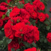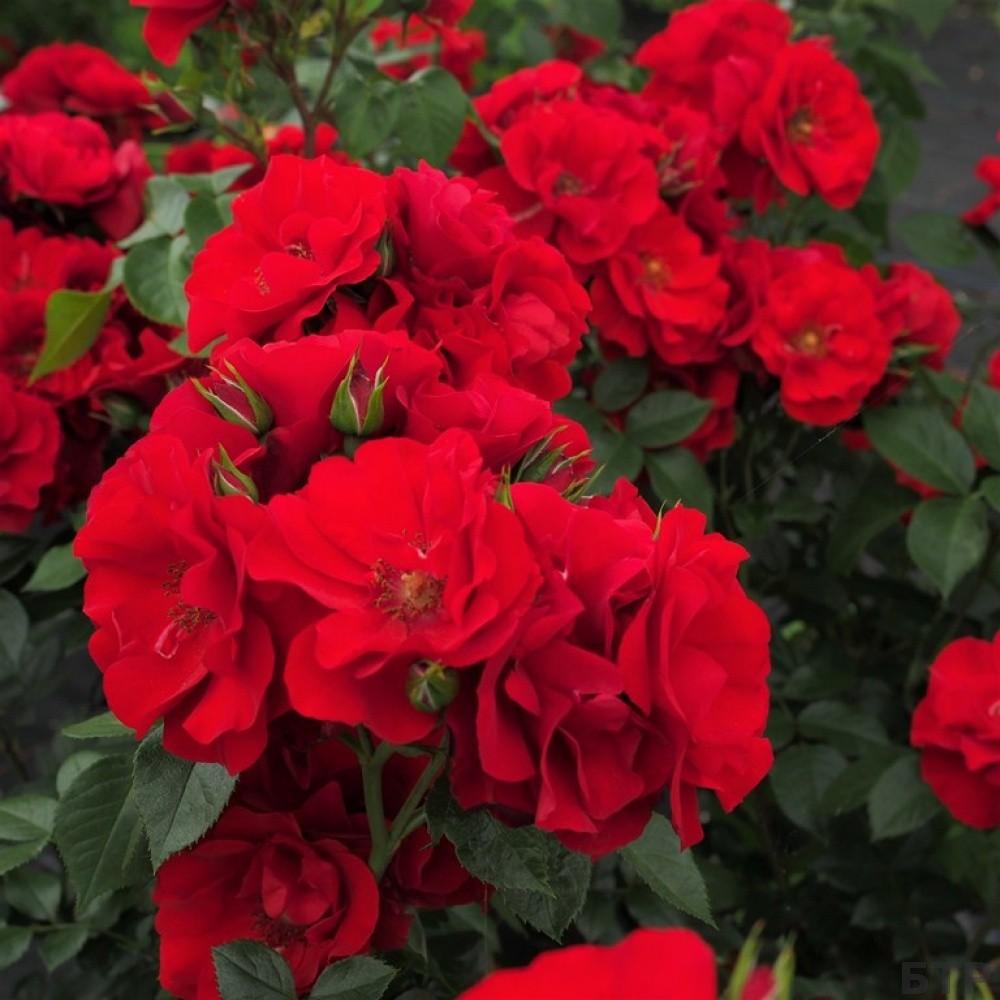Сорт, обильно цветущий бархатистыми, ярко-красными, полумахровыми, собранными в кисти цветами.