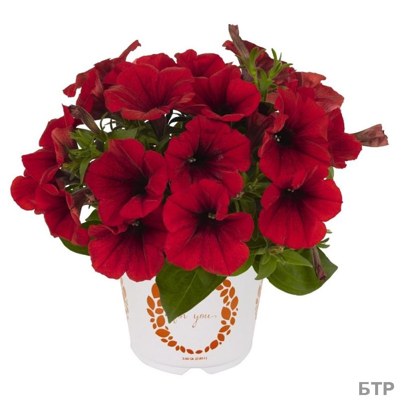Исключительно яркая вегетативная петуния с насыщенно-красными цветками, не выгорающими на солнце. Формирует идеально сбалансированный шаровидный куст с обильным ветвлением. Раннее и продолжительное цветение делает этот сорт идеальным выбором для кашпо, контейнеров и клумб.