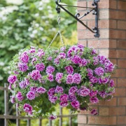 Полумахровая вегетативная петуния с нежными сиренево-розовыми лепестками и темным зевом. Компактный сорт с обильным цветением, идеально подходящий для подвесных кашпо и контейнеров.