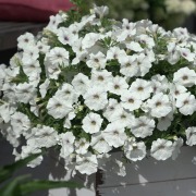 Изысканный вегетативный гибрид с жемчужно-белыми лепестками, нежным сиреневым напылением в центре и солнечным желтым горлом. Мощное растение создает эффект воздушного облака с романтичными цветовыми переливами.