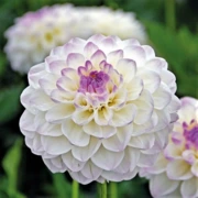 Элегантный двухцветный сорт с кремово-белыми лепестками и сиренево-розовой каймой по краям. Крупные махровые соцветия диаметром 12-15 см на прочных цветоносах высотой до 100 см. Идеален для срезки и создания романтичных садовых композиций.